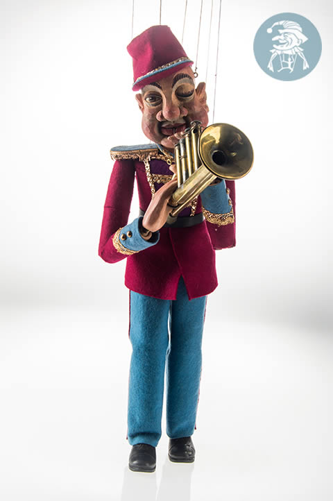 The Trumpeter is one of the five members of the circus band added later to the Lanchester Circus. His head was carved by Jack Whitehead in the distinctive Germanic style for which he became well known, with the body and costume created by the Lanchester’s.