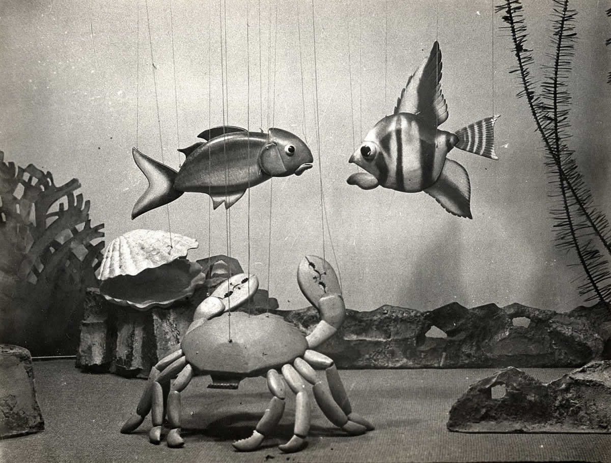 The Lanchester Marionettes’ Underwater Ballet, performed to Tchaikovsky’s Swan Lake, told the story of a mermaid whose tail becomes trapped in the jaws of a giant clam. As the ballet unfolds, a series of underwater creatures—including a goblin, a swordfish and a seahorse—attempt to free her, each effort ending in failure.
