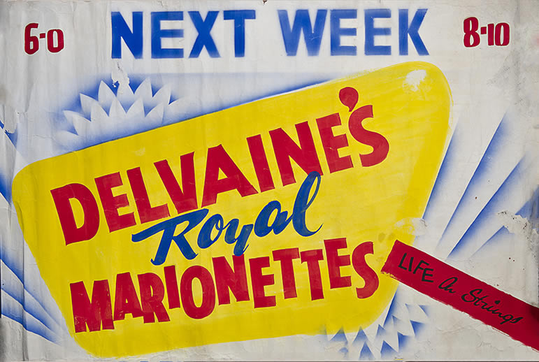 The Delvaines Royal Marionettes were the last major survivors of the grand Victorian touring marionette shows that once travelled widely across Britain. Although the name “Delvaines” was adopted in 1902, the troupe’s origins lay with brothers Daniel and Harry Fanning, who had long careers performing with leading companies such as the D’Arc, Bullock’s, Jewell’s and the Wildings. Striking out on their own in 1875, they later took over Bullock’s show after his death. The brothers eventually separated when Daniel married Anna Marie Matthews, whose own family had deep roots in circus performance. The name “Delvaines” came from her family’s stage name, Delevanti, used by a troupe of circus acrobats.