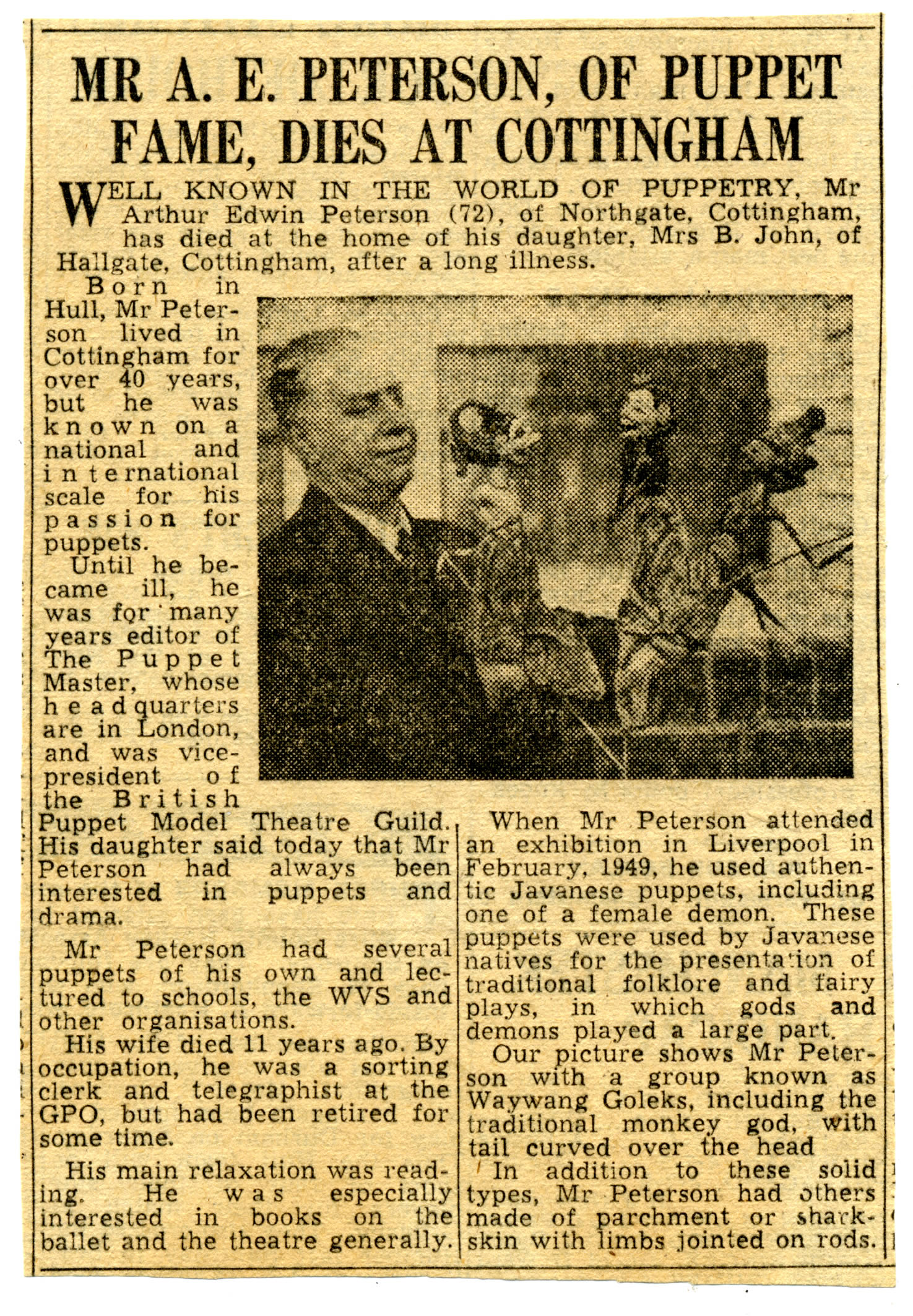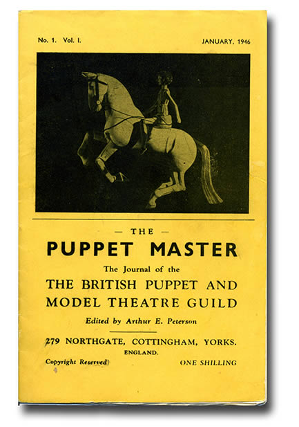 Edited by Arthur Peterson, the first issue of Puppet Master was published in January 1946. Its cover featured “Snowball and Estrella,” two marionettes from William Simmonds’ Circus, and its twenty pages included performance reviews, reports from the recent Guild exhibition in London, member updates, and an article on scene painting, content remarkably similar to what readers enjoy today. Despite changes in format and publication frequency over the decades, and now appearing annually, the Puppet Master has consistently reflected the wide‑ranging interests of the Guild’s membership.