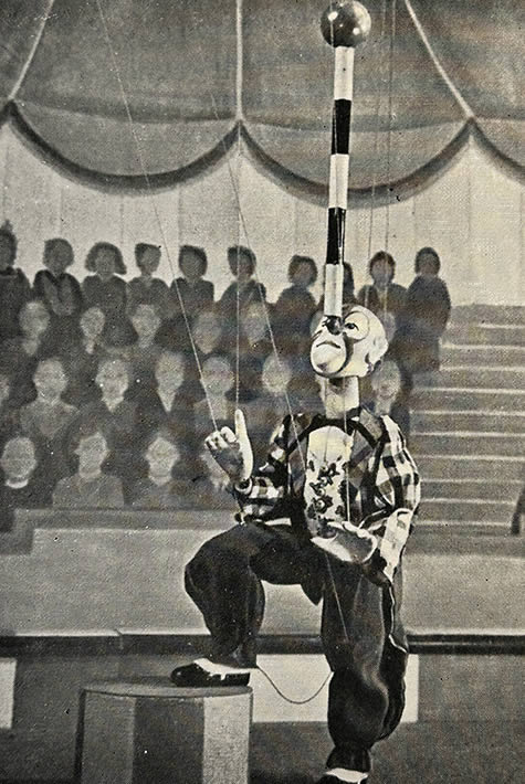 Little Willie the Clown was one of the earliest marionettes created for Waldo Lanchester’s Grand Circus. Designed as a comic performer, he became known for a playful routine in which he balanced a Belisha beacon on the end of his nose. He soon became the mascot of the circus on posters and other advertising for the show.