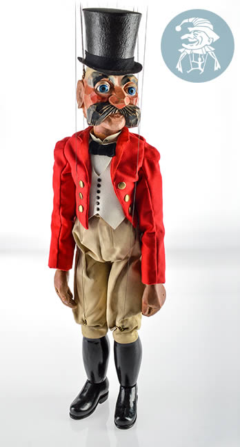 The Ringmaster from The Grand Circus was not originally created for this role. He was later adapted after Waldo Lanchester donated a significant number of his puppets to Polka Children’s Theatre in Wimbledon. The figure was first carved by Werner Jackson and began his life as Professor Schlookuc, a sealion trainer, before being re‑purposed into the Ringmaster character.